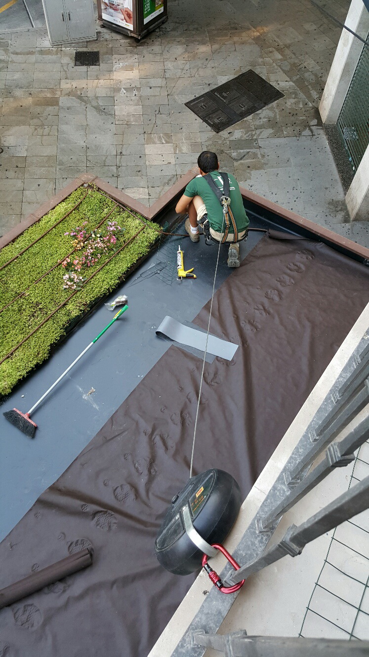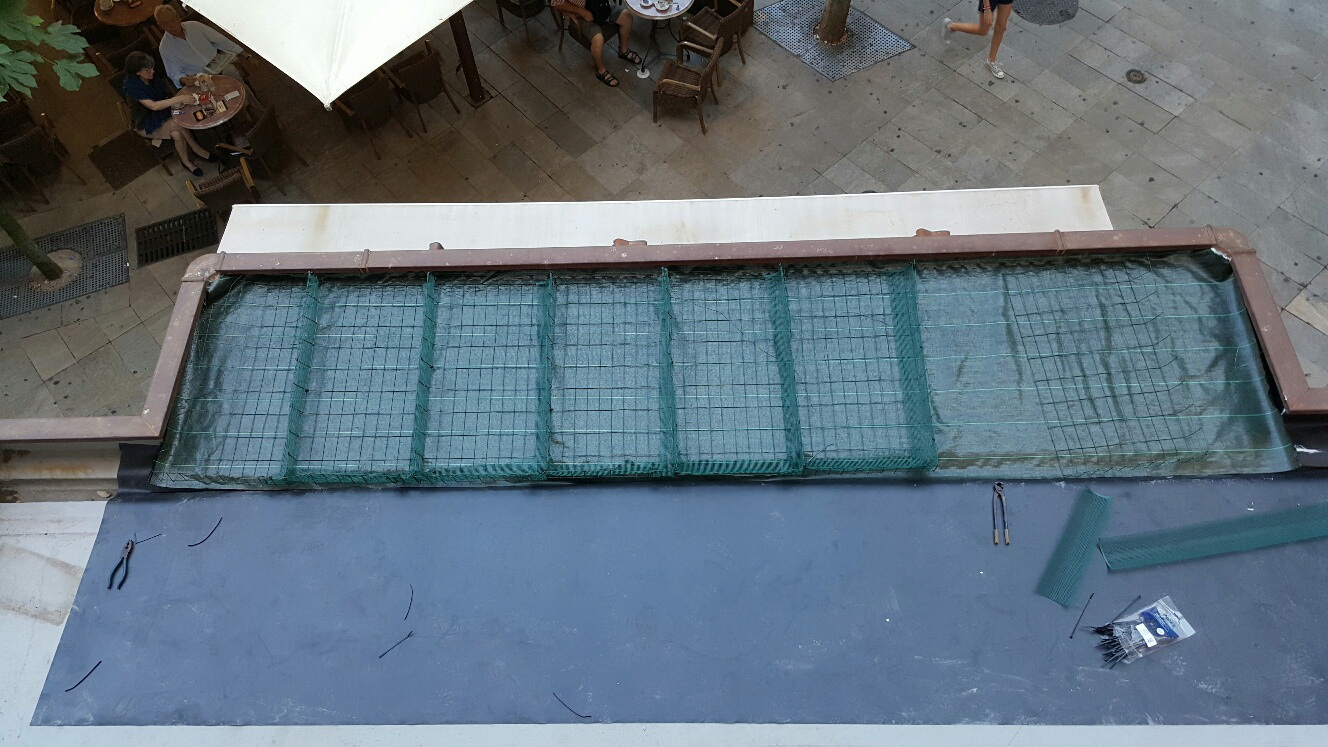 Realización de cubierta verde en el bar Bosch sobre el chaflán de entrada de la cafetería, dando unas vistas excelentes al restaurante inaugurado recientemente.