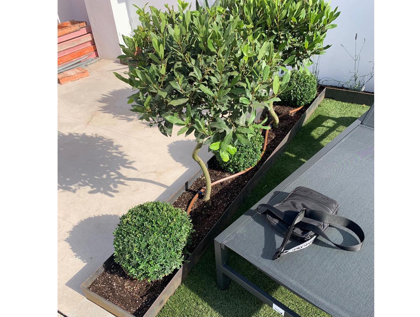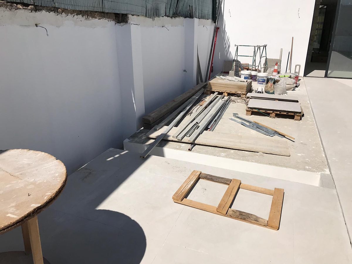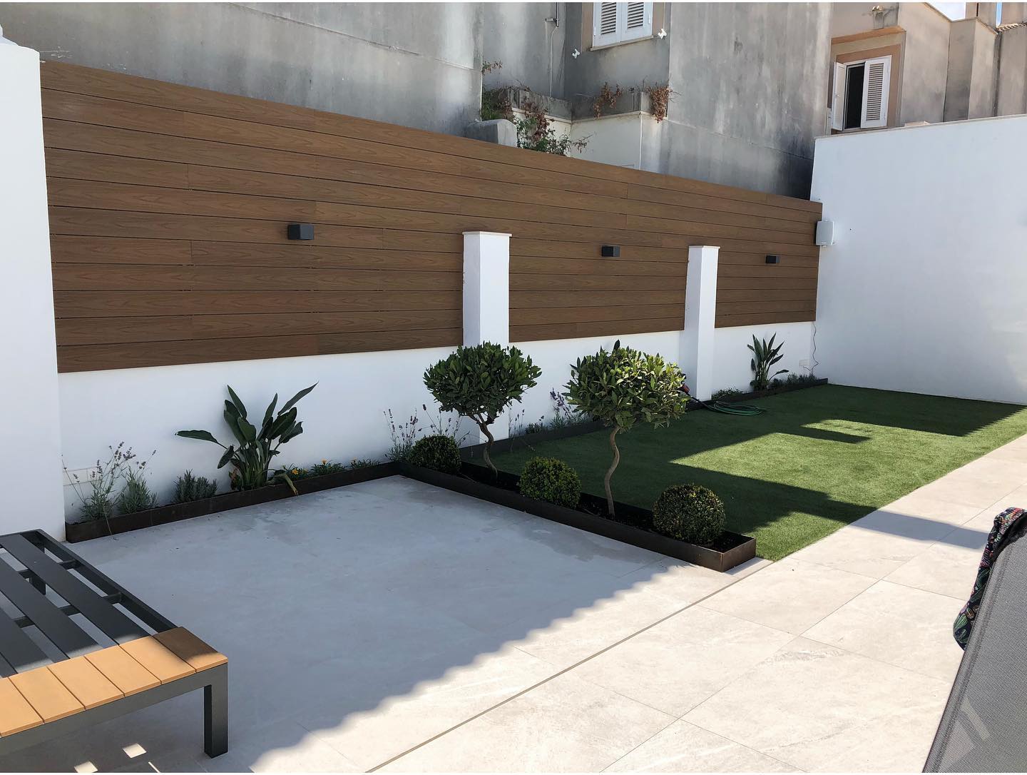 Evolución del proyecto de terraza con la colaboración de Herrería Guillermo Amer Ramon( planchas acero corten) y Toni Capo Parquet (tarima exterior sobre pared).