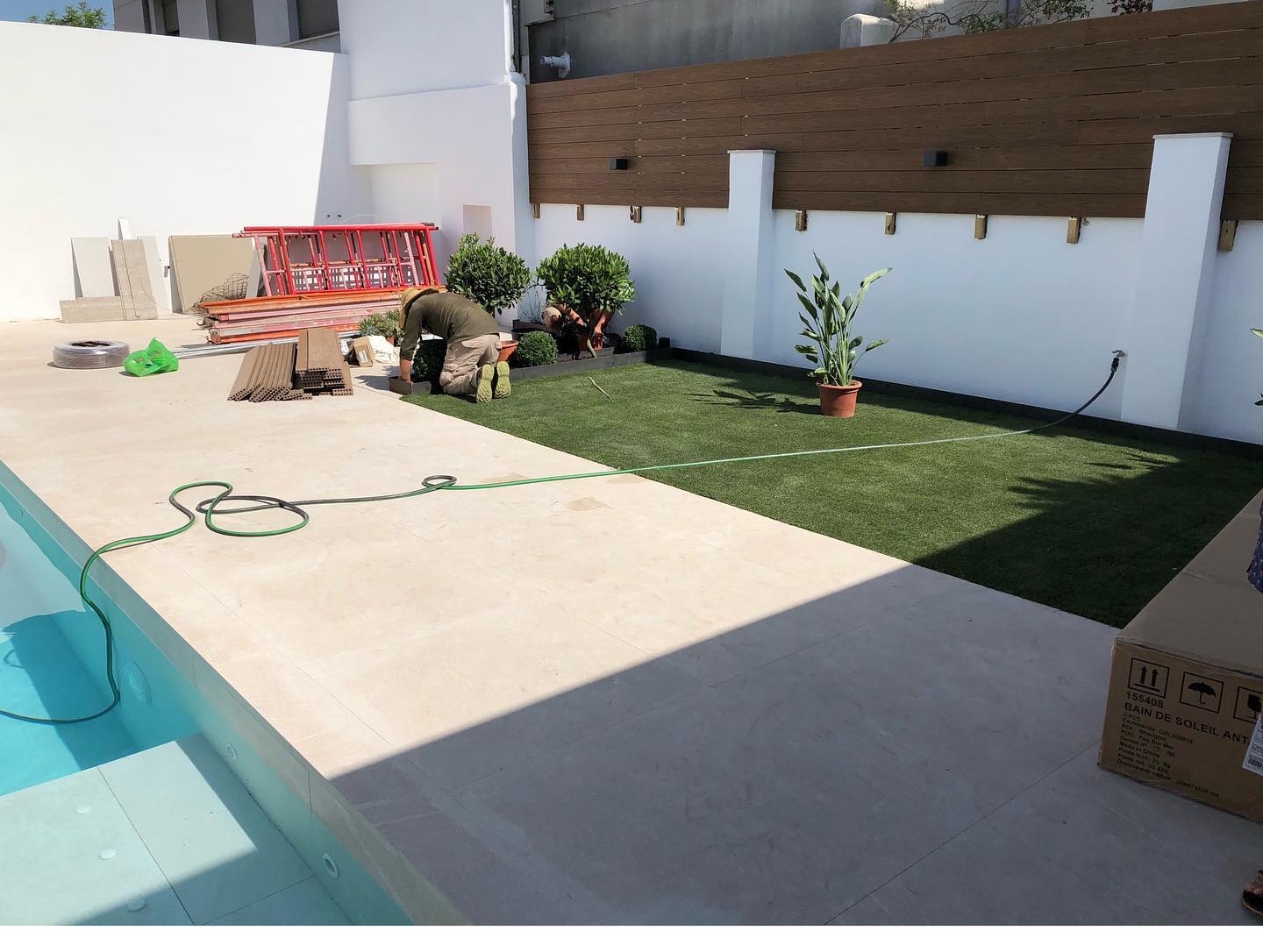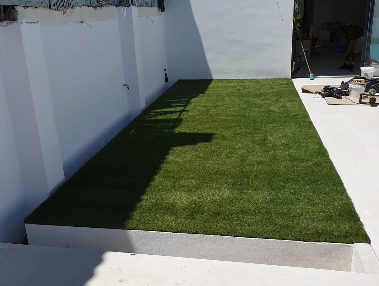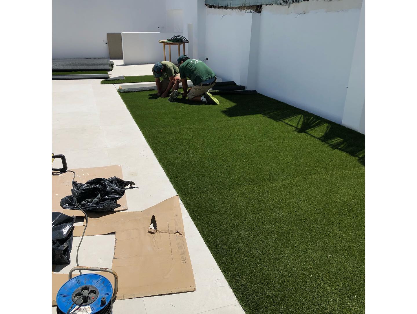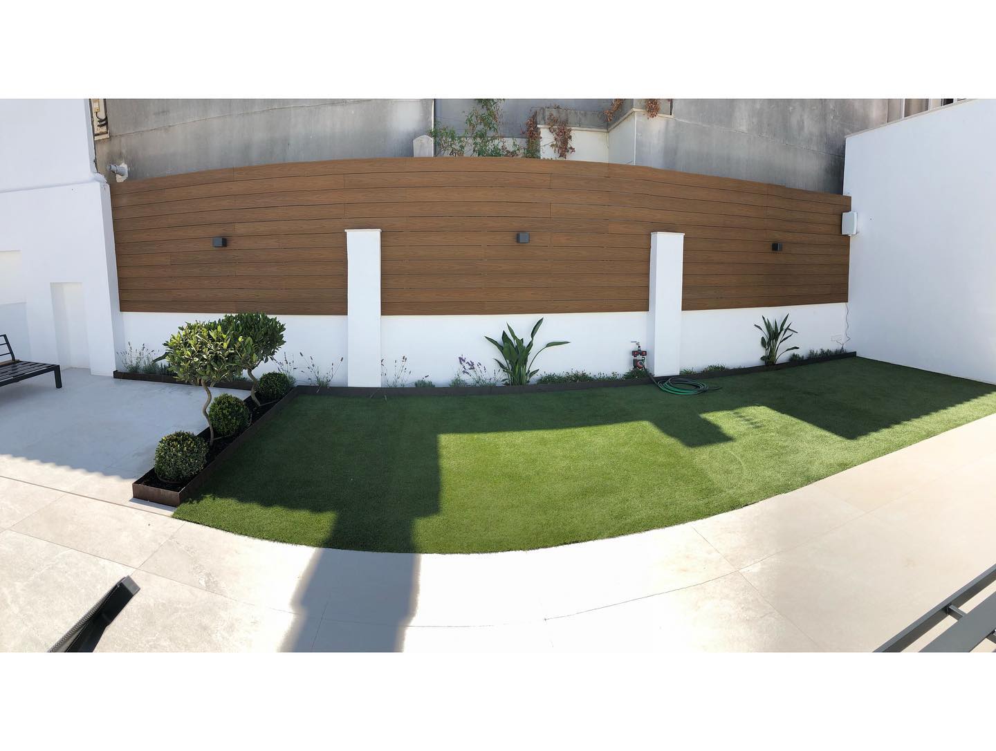 Terraza ajardinada con césped con diseño exclusivo por Cultivos Pima